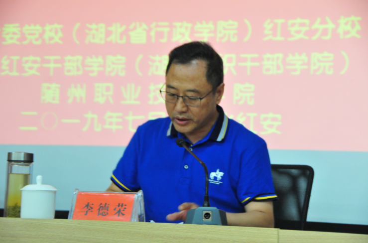 李德荣强调,学院党委组织部要高度重视这次培训工作,要积极与红安干部学院学员组织处密切配合,按照培训计划精心组织,周密安排,大胆管理,严格要求,抓好各项制度的落实;要关心参训学员的学习和生活,尽最大努力为他们创造一个良好的学习环境;要坚持深入教学一线,随时了解和掌握培训情况,注意收集和总结培训中好的经验和做法,悉心研究,进一步提高培训质量和培训工作水平。希望全体参训学员模范遵守校纪校规,注意安全,注意随州职院形象,把全部精力放在学习上,不做与学习培训无关的事。