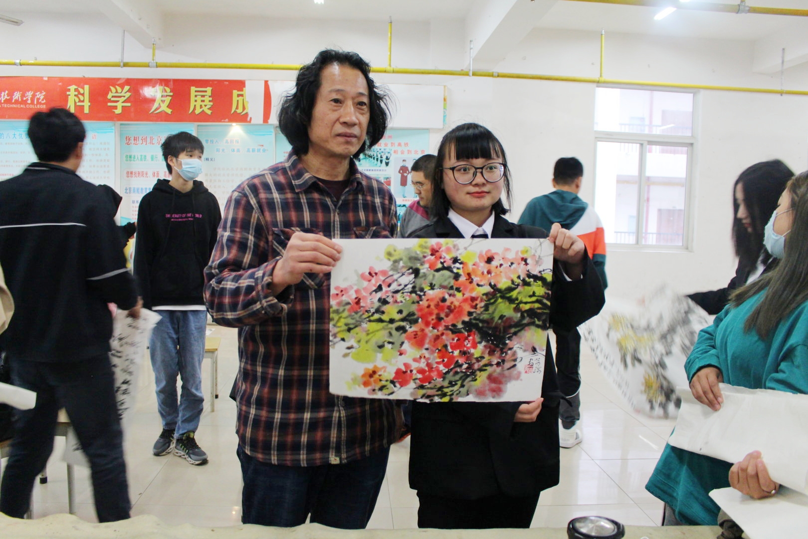 在图书馆二楼大厅,书法协会和美术协会的书画家们为师生们题字作画,用涓涓笔锋,为随职和随职学子书写寄托美好祝愿的墨宝,现场的广大师生对书法美术作品赞不绝口,纷纷与艺术名家们合影留念。
