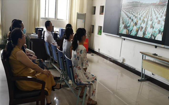 学院中层以上领导干部在学术报告厅集中收看庆祝中国共产党成立100周年大会直播。
