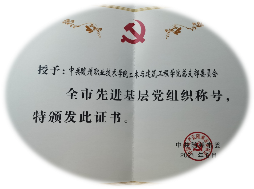 2021年,学生参加建筑识图、BIM应用、工程算量3个,1+X证书通过率达93.6%、职业技能大赛获奖52人次、“互联网+”创新创业大赛3项省级铜奖、挑战杯5项省级三等奖、就业率达98%;教师参与6个核心课程团队24人,建设5门在线开放精品课程,获得国家一级执业资格证书4人,二级执业资格证书10人,“1+X”等级证书高级6人,初级15人,考取技能等级证书达到90%,立项校级提质培优项目7个,培训随州市建筑行业从业人员达1500人次。土木与建筑工程学院党总支被授予“随州市先进基层党组织”称号。