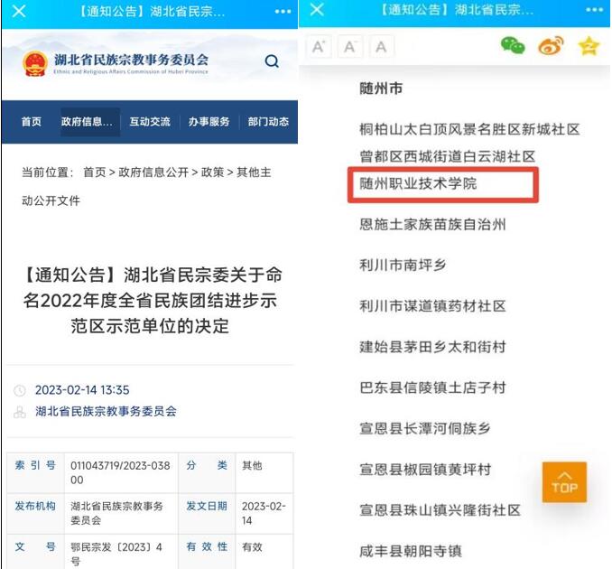 据了解,省民宗委共计命名134个地区和单位为2022年全省民族团结进步示范区示范单位。其中,随州市共有3个单位,全省高校共有6个。