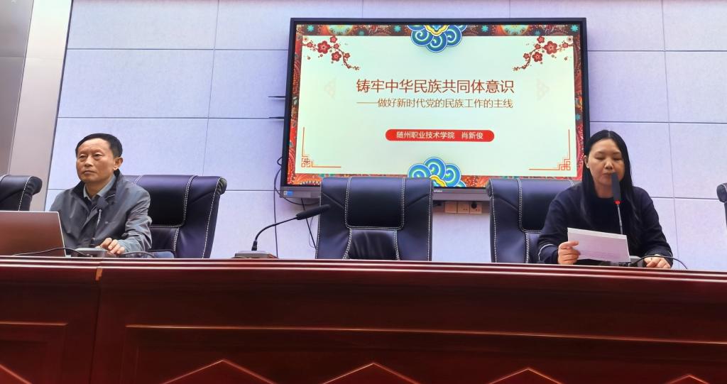 围绕铸牢中华民族共同体意识,肖新俊从中华之民千年实践的意识觉醒、中国共产党百年奋斗的智慧结晶、中华民族伟大复兴的精神支撑、随州职院高质量发展的力量之源四个方面,系统阐述中华民族共同体意识的起源、发展、意义,并深度解读了习近平总书记关于加强和改进党的民族工作的重要思想。他强调,铸牢中华民族共同体意识,是维护各民族根本利益的必然要求,是实现中华民族伟大复兴的必然要求,是巩固和发展平等团结互助和谐社会主义民族关系的必然要求,是党的民族工作开创新局面的必然要求。他还从组织领导体系、资源保障体系、责任落实体系、示范考评体系、品牌活动体系等方面介绍了MILAN米兰体育·(中国)官方网站民族团结进步创建的实践成果。