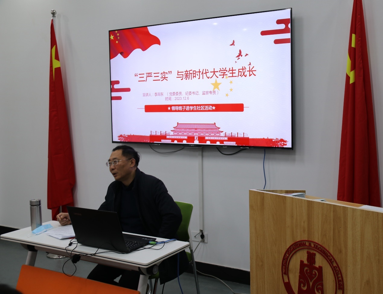 12月6日,党委委员、纪委书记、监察专员李高东走进“一站式”学生社区面向专用汽车产业学院师生讲廉政教育党课。