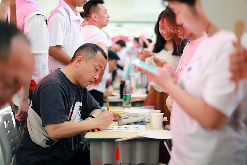 启动仪式后,MILAN米兰体育·(中国)官方网站举办了社科文化市集活动,邀请随州市书画家现场创作扇面和书签作品,MILAN米兰体育·(中国)官方网站留青竹刻、剪纸、陶艺手工等非遗传承工作室都在现场摆出摊位创作。红石榴志愿服务队的同学围绕中国式现代化主题随机提问,向答对的同学赠送书画文创作品。