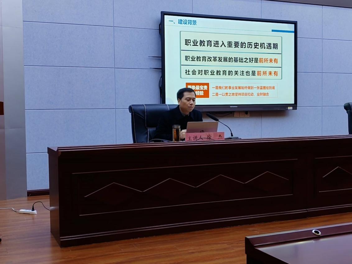 梁学军对徐杰教授的精彩报告给予了高度评价。他指出,徐教授的报告既有理论的高度,又有实践深度,对学校“双高”建设工作具有很强的指导性。他强调,要继续加强对政策的研究,借鉴兄弟院校的典型经验和做法,做好专业建设和人才培养改革工作。要认清深化产教融合对学校建设发展的重要性,认真研究区域产业的发展现状和未来发展趋势,深入思考产教融合的实质和特色。要继续发扬“双高精神”,明确责任分工,强化责任担当,各部门单位要立即动起来,形成“比学赶帮超”的氛围,全力以赴做好新一轮“双高”申报工作。