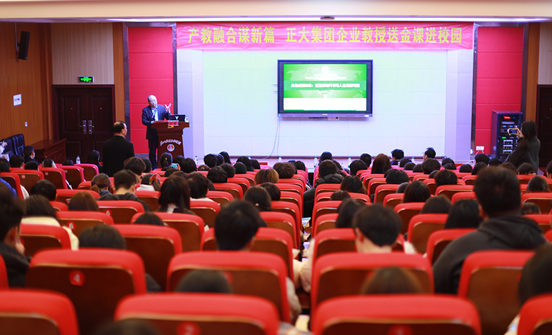 座谈会后,吕攀以“从起点到未来:大学生在变革时代书写人生无限可能”为题,在学术报告厅为全院师生带来一场兼具思想深度与人文温度的专题讲座。吕攀以亲身经历为引,倾囊相授人生进阶的智慧与经验,并携正大集团创新食品与师生共享,在思维碰撞与舌尖体验中架起校企共育人才的桥梁。