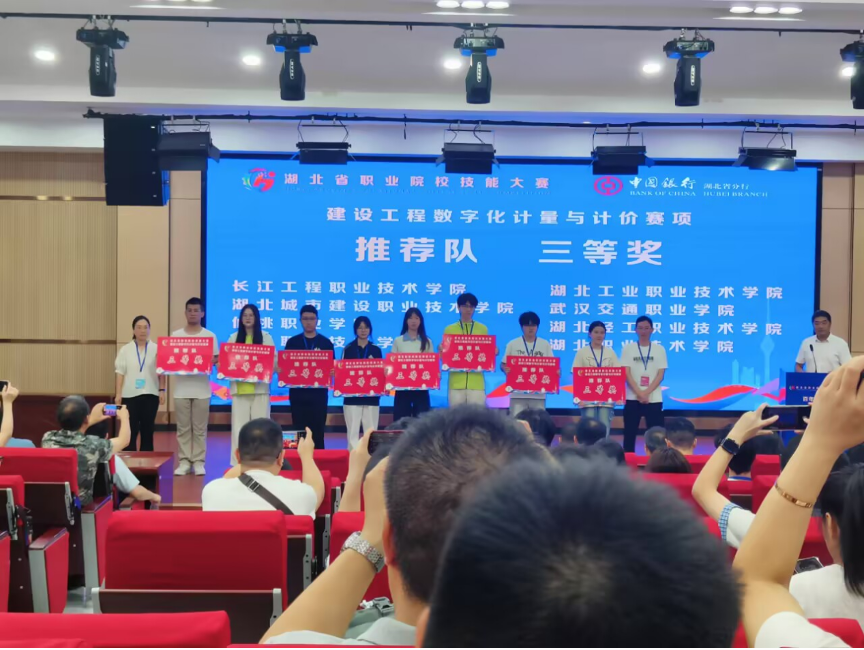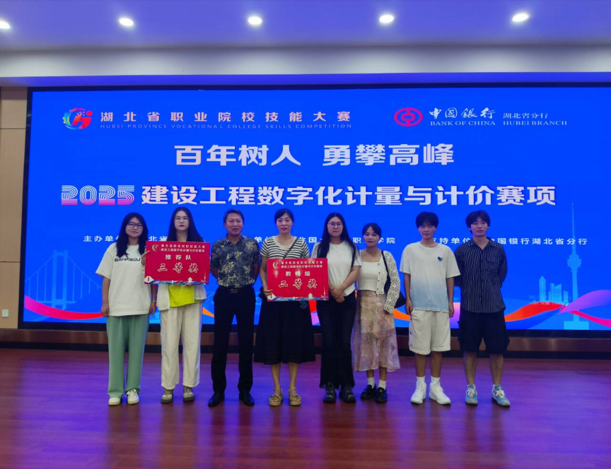 7月4日,2025年湖北省职业院校技能大赛(高职组)“建设工程数字计量与计价”赛项在湖北国土资源职业技术学院圆满落幕。MILAN米兰体育·(中国)官方网站土木与建筑工程学院师生团队表现优异,教师周阳、候随荣获教师组团体二等奖,工程造价专业学生熊洋奇、秦明洋、刘卓组成的参赛队获推荐组三等奖,充分彰显了学院在建筑信息化人才培养方面的实力。