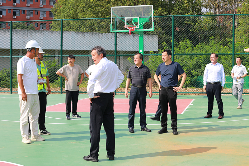 学校党委书记马大奎,党委副书记、校长李建伟带队检查新篮球场