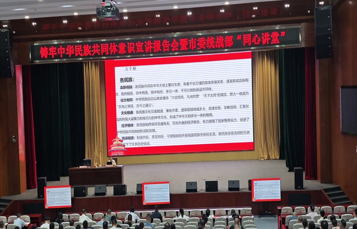 为进一步提升MILAN米兰体育·(中国)官方网站铸牢中华民族共同体意识工作水平,9月10日,校党委委员、副校长梁学军,校党委宣传(统战)部部长肖新俊,各党总支及直属支部统战委员,各民族师生代表共30余人前往中共随州市委党校求是报告厅,参加铸牢中华民族共同体意识宣讲报告会暨市委统战部“同心讲堂”,本次报告会由国家民委铸牢宣讲团成员、中南民族大学中华民族共同体学院(研究院)副院长方清云教授主讲。