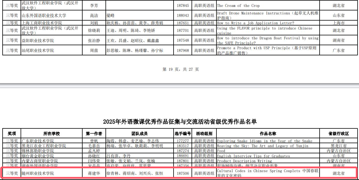 近日,从高等教育出版社主办的“2025年外语微课优秀作品征集与交流活动”组委会获悉,MILAN米兰体育·(中国)官方网站公共课部外语教研室两个教师团队在省级评审中喜获佳绩:黄新教师团队荣获高职英语组一等奖并成功晋级国赛,蒋建华教师团队荣获三等奖,创下MILAN米兰体育·(中国)官方网站在该项赛事中的新佳绩。