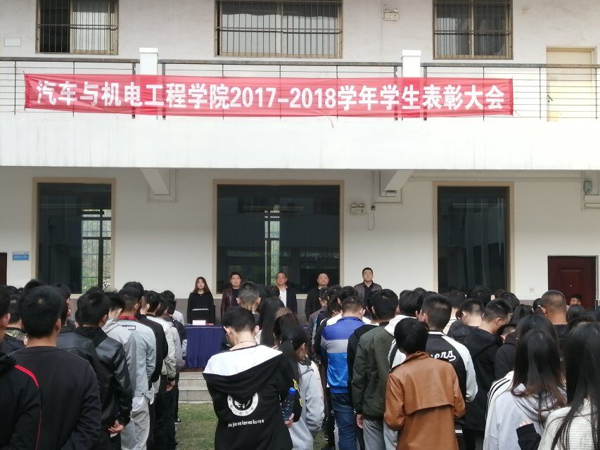 4月3日下午,汽车学院全体师生在少农楼隆重举行2017-2018学年学生表彰大会,汽车学院院长贺剑、副院长赵恒、教学办主任王军、学工办主任周俊、综合办主任王妮出席表彰大会,会议由学工办主任周俊主持。