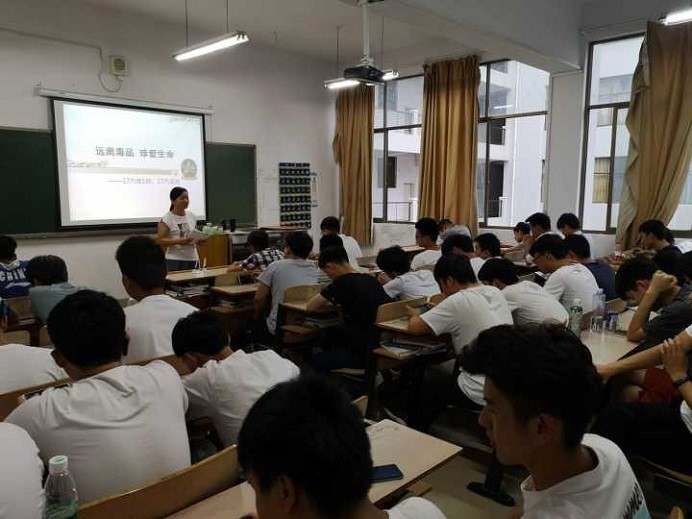 晚19:00,汽车与机电工程学院全体师生召开主题班会,班主任辅导员用准备好的教案认真讲解了毒品的危害,如何识别和防范毒品,呼吁大家自尊自爱,珍惜生命。随后,师生们一起观看了禁毒影片《毒战》,通过讲解和现场观影,同学们感触很深,积极发言,纷纷表示要用实际行动为“全民禁毒 健康荆楚”贡献自己的力量。