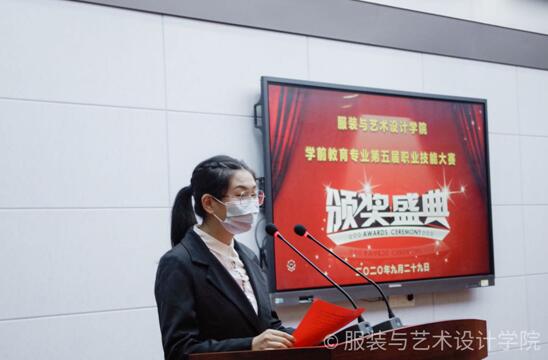 2020年9月29日晚,在学术报告厅,服装与艺术设计学院举行第五届职业技能大赛表彰典礼,本次活动旨在增强学生的劳动荣誉感、成就感,体现进取、进步,弘扬正能量。