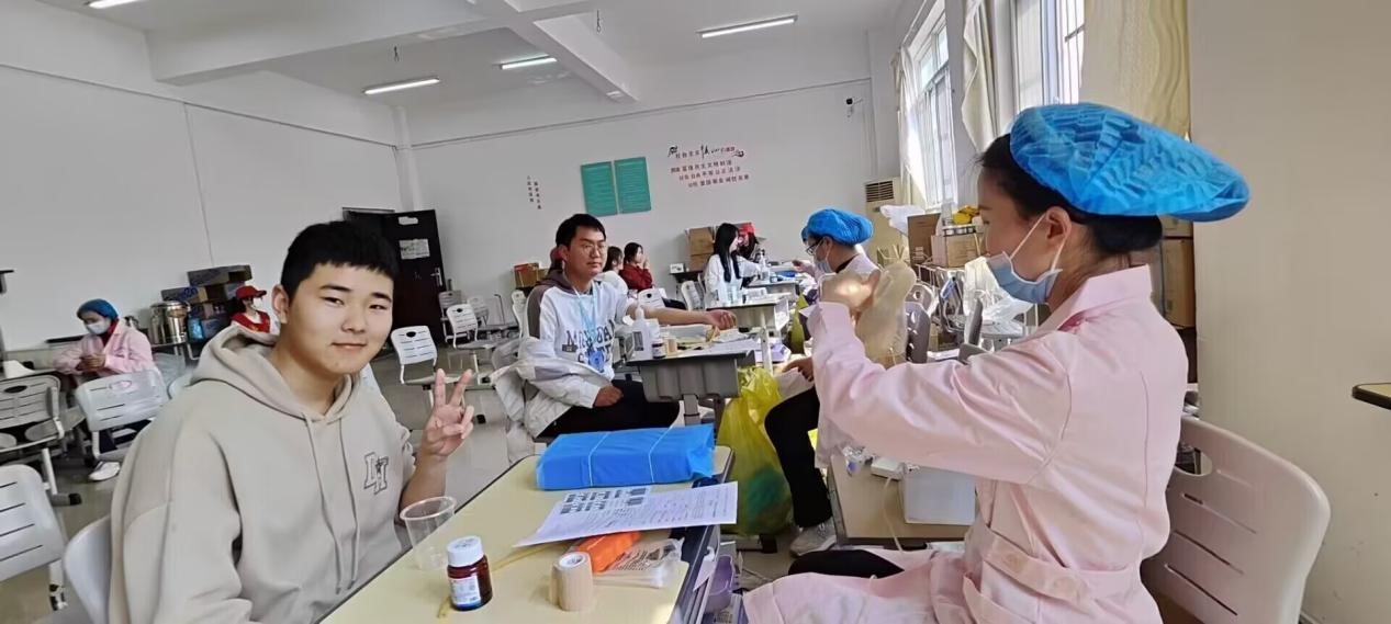 活动当天早上8:00,专用汽车产业学院学子有序地排起长队,依次进行信息登记、血液类型检验、静脉采血等环节。在献血区,前来献血的同学们纷纷挽起袖管,躺在采血椅上,献出自己的青春热血。2021级汽修班班长陈宏广同学说:“我已经不是第一次献血了,从大一到现在,我每半年献一次。我们身体健康,献出自己的一份爱心给需要帮助的人,这是我们大学生的义务与责任。”2022级机电班一班赵力衡同学表示:“人生就该有一次这样的经历,而且献血对身体有非常大的好处。”听着同学们朴实的话语,我们感受到了他们的爱心和真诚。