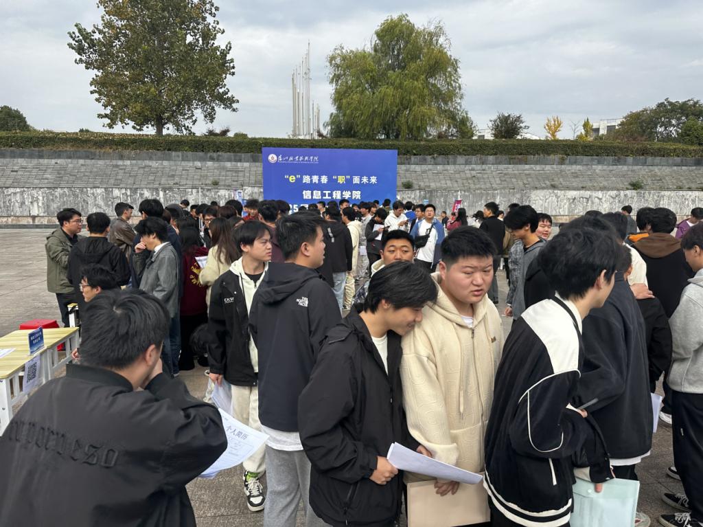 为推动学院2025届毕业生就业工作,搭建毕业生与用人单位之间的双向选择平台,信息工程学院于11月8日在图书馆前举办了2025届毕业生双选会。