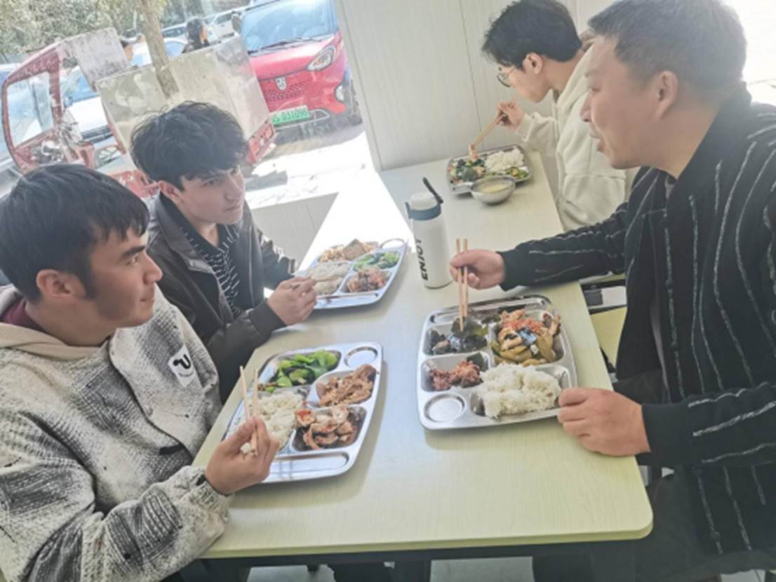 午餐时间,肖院长与学生们共进午餐,将这份关怀延续到了餐桌上。了解到学院不仅设立民族风味窗口,还在传统节日组织美食文化节后,他们表示,学校不仅尊重他们的文化,还为他们提供了很多学习和展示的平台,让他们感受到了前所未有的归属感与幸福感。