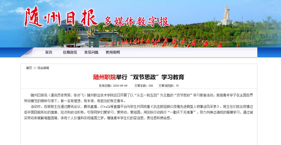 上一条:随州日报:随州职院创新考核机制强作风促发展
