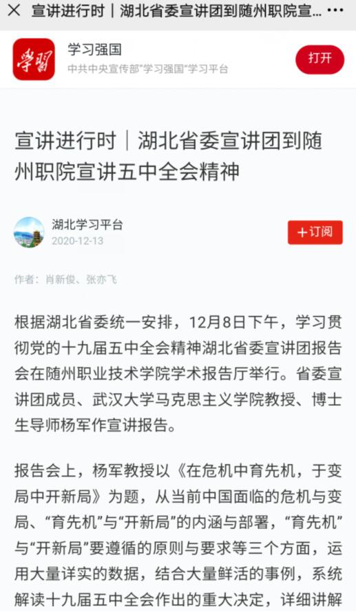 上一条:湖北高校思政网:市委宣讲团来校宣讲十九届五中全会精神